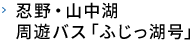 河口湖駅を起点に発着する可愛らしい3色の周遊バス。河口湖・西湖・本栖湖方面の3つのコースがあります。